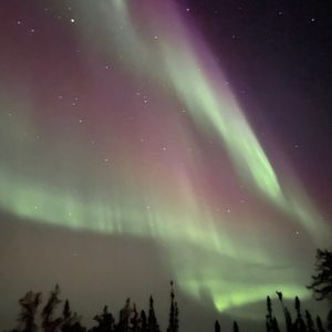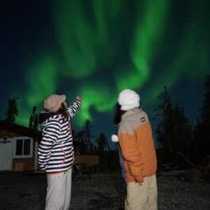 オーロラを家族で見たいという念願がかないました。ベルトラさんのツアーは2晩でしたが、2日とも素晴らしいオーロラを見ることができました。初日は鑑賞地に向かうバスの中からもう見えて、感激しました。ガイドのカリンさんが、美しい写真も撮ってくれ、とても嬉しかったです。また、バスの中ではイエローナイフの観光情報も教えてくれて、とても参考になりました。ただ一点残念だったのは、小屋のトイレでした。
