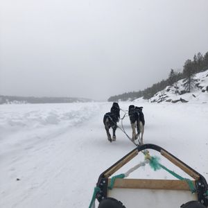 とにかく寒いので大袈裟過ぎる防寒でも大丈夫なくらいです。オフィスに着いてから顔周り、首のカバー、手袋二重は必須です。防寒具も隙間から風が入ってくるので厚めの服を着たほうがいいでしょう。寒過ぎて時間も長く感じましたが、賢いワンコたちに引いてもらってのソリ体験はとても貴重でした。誰もいない銀白の世界を疾走できて大きな感動もありました!