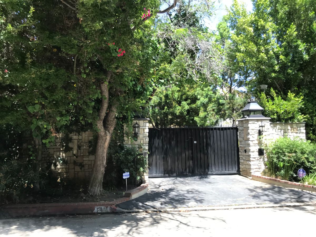後ろに豪邸があるであろうと想像して、門を見るツアーですね。豪邸はもちろん見られません。たまたま門が開いたら別ですが…。表札があるわけでないので、案内された所が本当にスターの家かはわからないけれど、塀の高さとかセキュリティの強固さとかを見るには面白い。