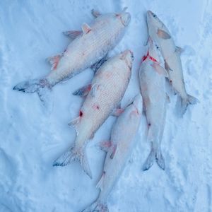 アイスフィッシングは見ているだけですが、人力で氷の穴を掘ったり、網にかかった魚が凍ったりするのを見るのは興味深かったです。魚と記念撮影もできました。