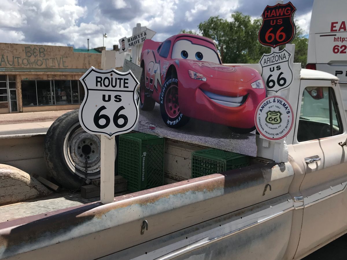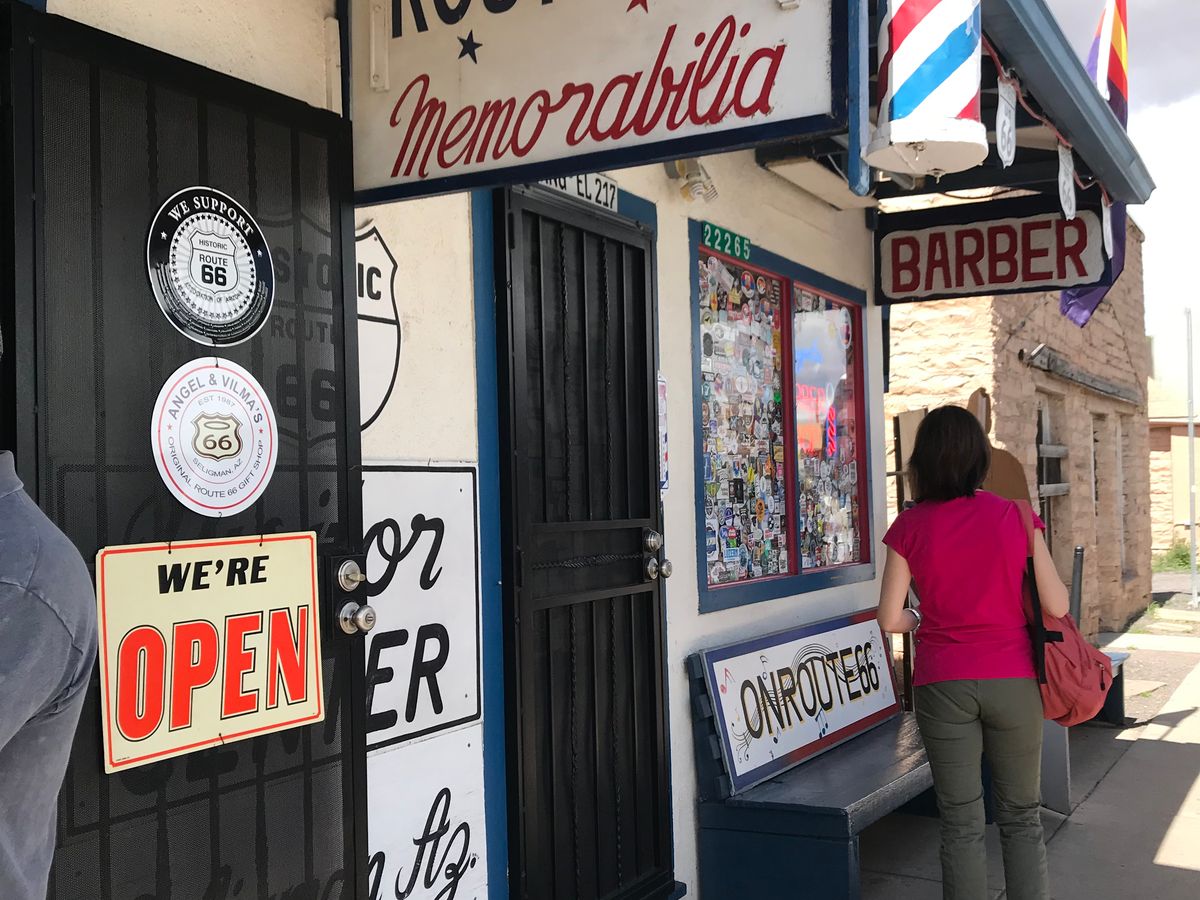 6時15分ホテル出発してセリグマンで休憩、写真でよく目にするルート66の看板、床屋でガイドさんに沢山写真を撮ってもらいワクワク感が高まりました(笑)