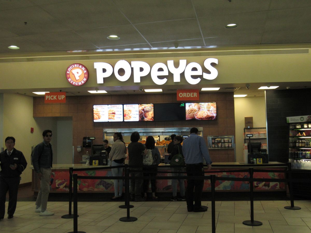 朝食&昼食を調達します。ドライブイン内には色々お店がありますが、その中にケンタッキーフライドチキンよりもアメリカでは有名なフライドチキンのお店"POPEYES"ポパイズがあります。日本にはないお店です。せっかくアメリカに行ったのであればご賞味あれ。味はマイルドとスパイシーから選べますがスパイシーは結構辛いので苦手な方はマイルドがおすすめです。