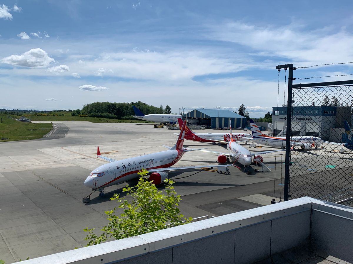 工場見学の後、ちょうど来ていたドリームリフターも写真に撮れたので満足。(737maxがたくさん駐機してあるのはちょっと残念)
