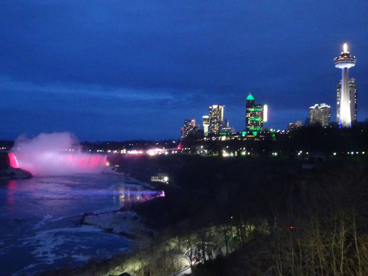 早朝出発で集合場所に行くと各方面出発の人が沢山いて少々わかりずらかったです。ナイアガラツアーは英語圏約20名スペイン語圏約15名日本人6名の国際色豊かな編成で私達には日本人ガイドが付きポイントポイントで案内をしてくれてよかったです。ナイアガラの滝は想像以上の迫力で参加してよかったと思いました。又、カナダ側のホテルに泊まったのですが想像以上の賑やかさで、リトルラスベガスといった雰囲気で驚きました。(天気が翌日悪い予報だったので先にカナダ側の滝を見物して臨機応変に対応してもらいました)