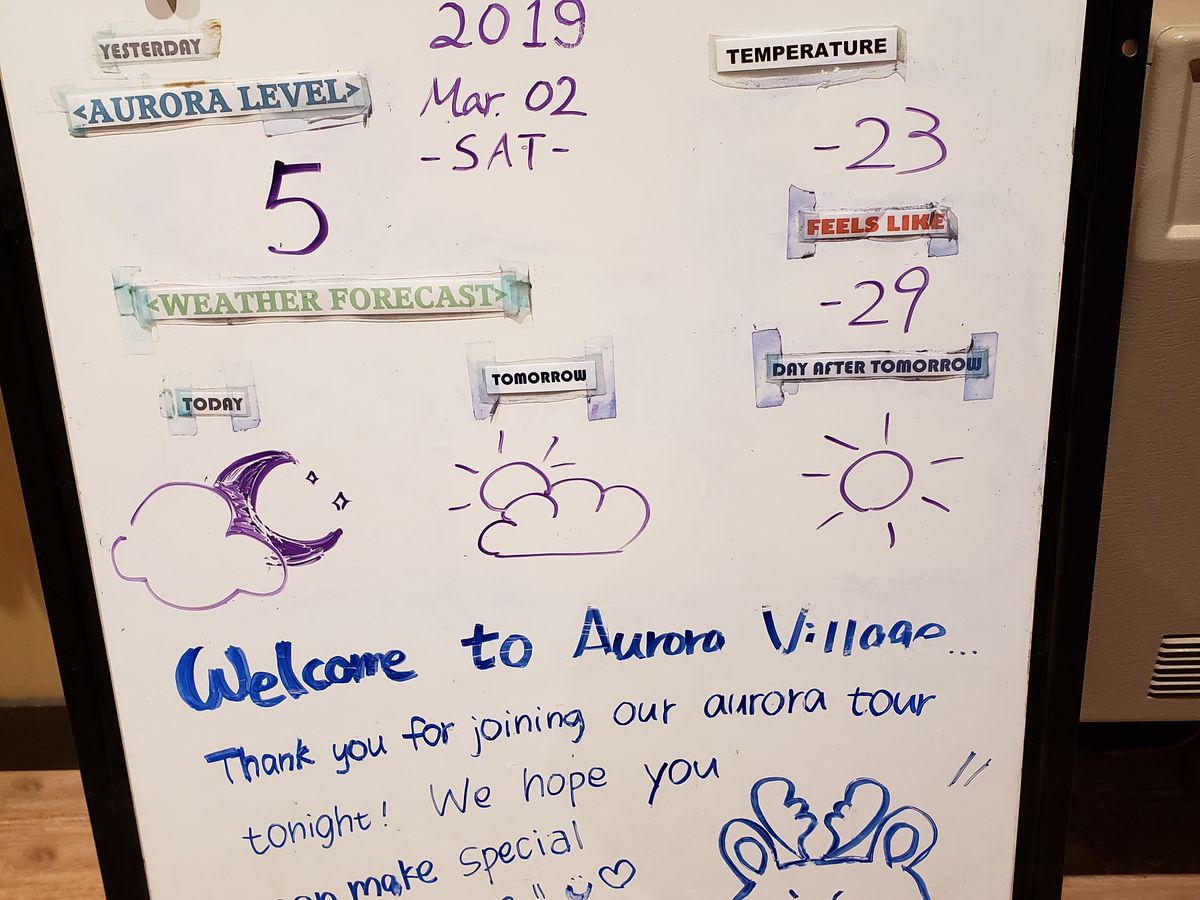 オーロラ鑑賞のビレッジもほんとにこじんまりした村(ビレッジ)とゆう感じで、鑑賞ポイントもいろいろあって楽しい◎3回のうち、初日と最終日はレベル4で見れました。最終日は動いてるオーロラも見れて、感動です。