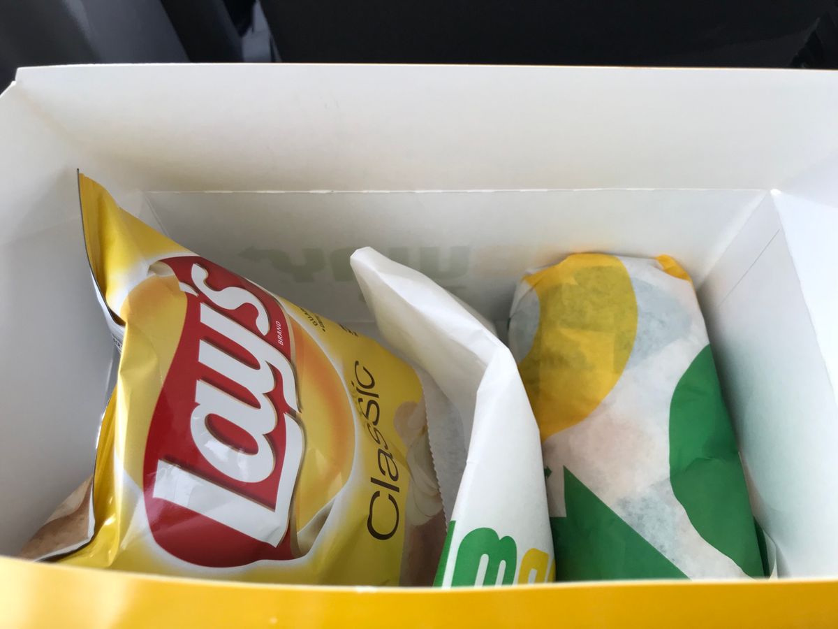 お昼ご飯は車内でサブウェイのランチパックを頂きました。