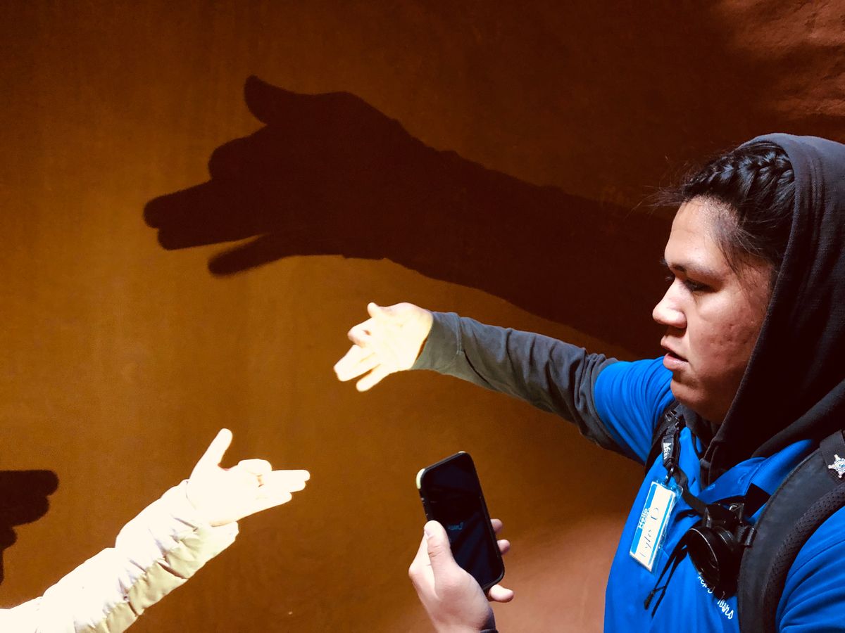 アンテロープではナバホ族(Lyle)の案内。英語での案内ですが、わかりやすくとても楽しい時間でした。