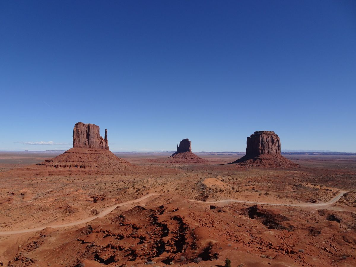 ・モニュメントバレーは最もお気に入りのポイントとなりました。真っ青な空に赤茶色の砂山が写真映えします!