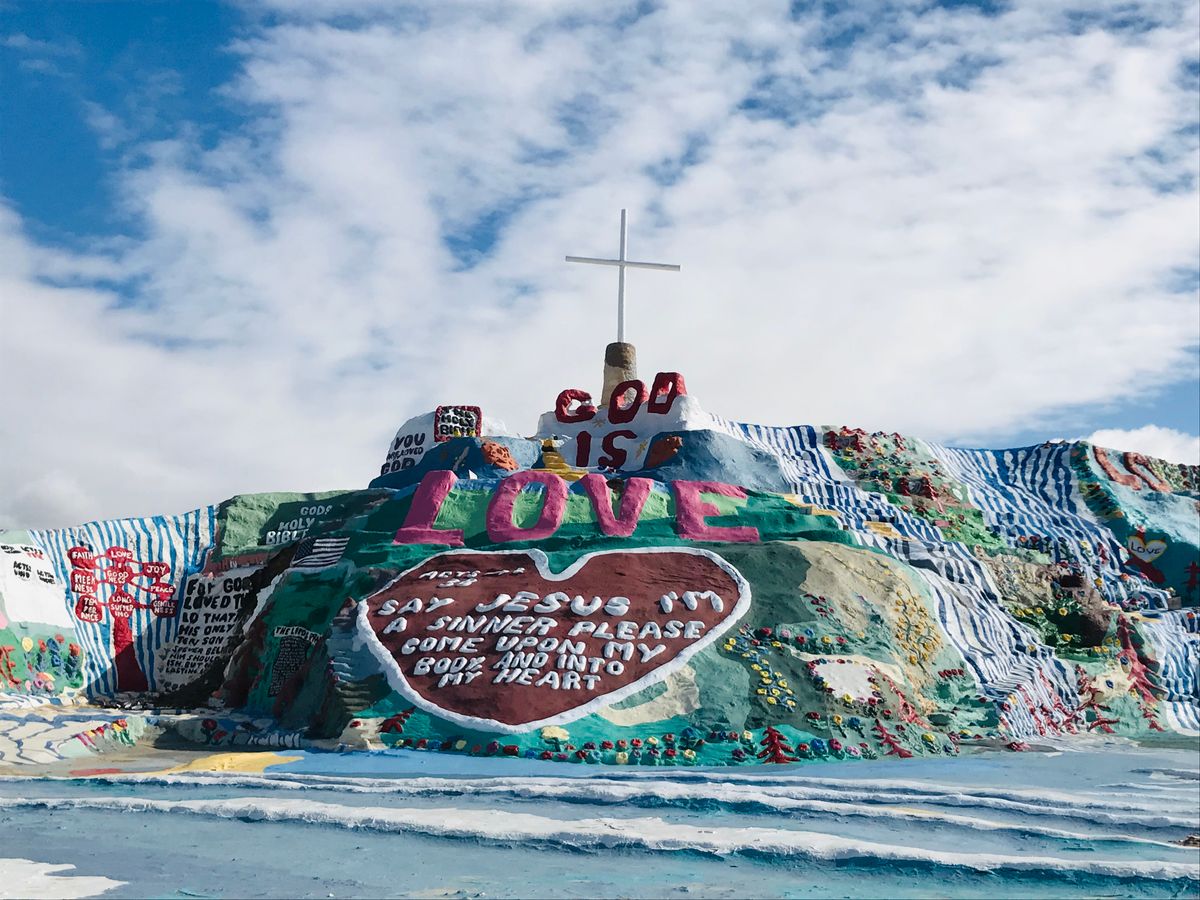 laは雨だったので心配でしたが、サルベーションマウンテンに着いたら晴れていてよかったです。でも、前日の雨で中には入れず残念。ジョシュアツリーは広大な土地にあの景色!映画の世界にいるようでした。この日は、とにかく風が強すぎて寒かったです。お昼に食べたIN.N.OUTのハンバーガーはすごく美味しかった!