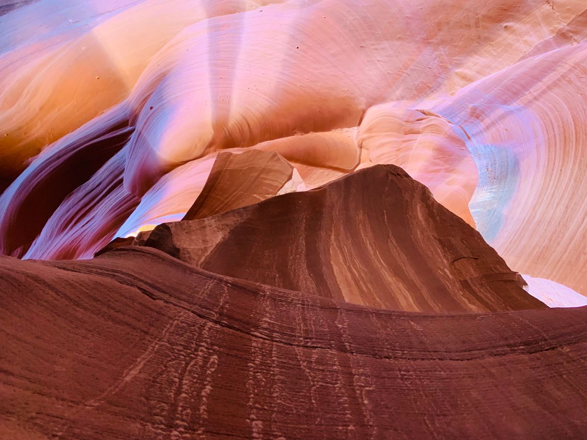 アンテロープの中は写真撮影の人でいっぱいで前に進めません。ある意味ゆっくり見られますが、写真に夢中になっていると、同じツアーの人に置いていかれます。気をつけてください。また、ツアーガイドさんにカメラを渡すと、信じられないくらい綺麗にアンテロープ内部の写真をとってくださいます。私たちのツアーの参加者は、ほとんどみんなお任せで撮ってもらっていました。