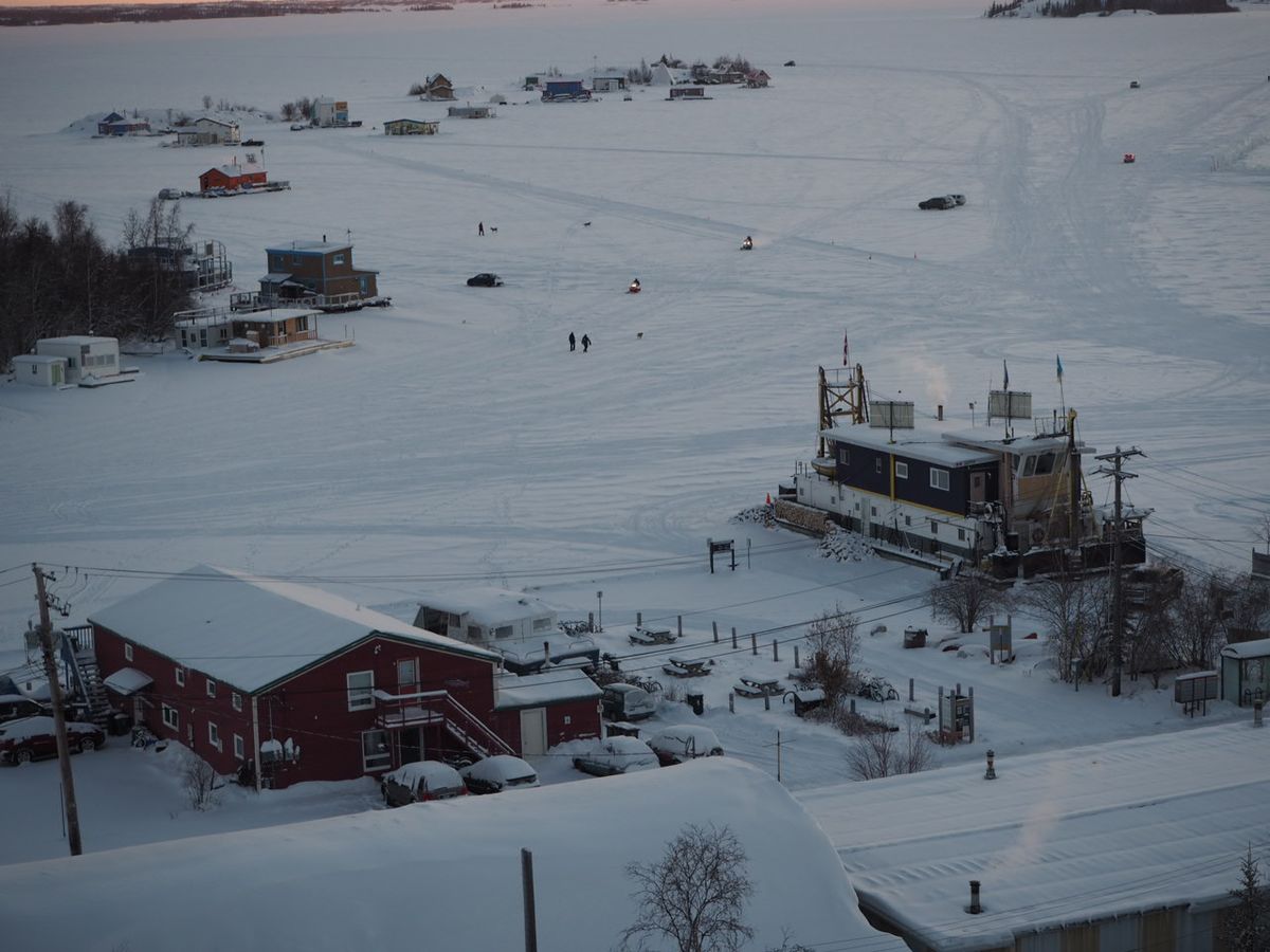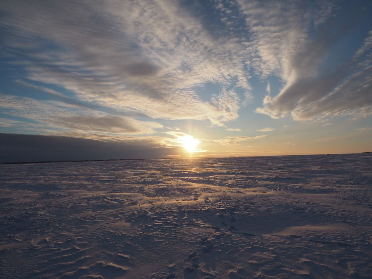 しかし、オフィスから釣り場まで、スノーモービルとその牽引するボートで移動するのも楽しかったし、その先には絶景が待ってました。