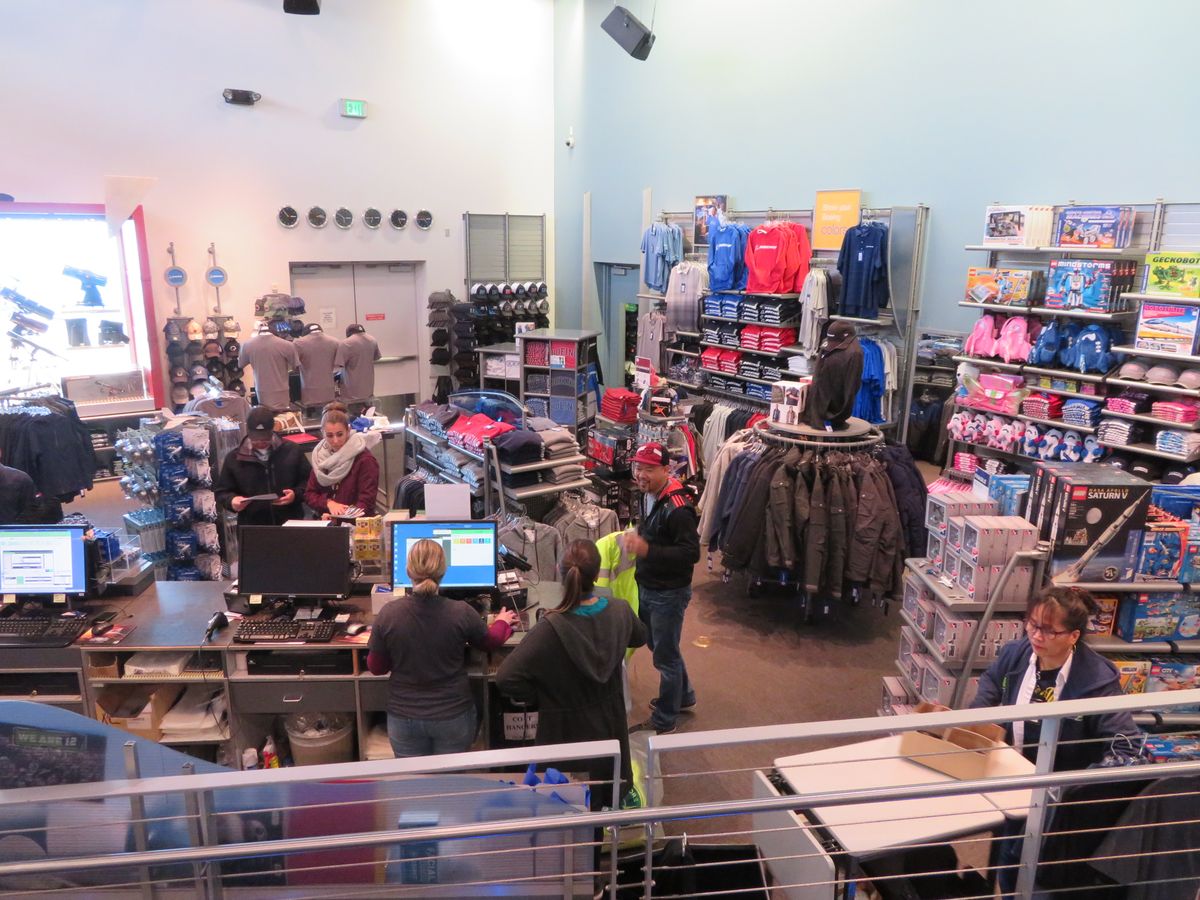 お土産コーナーもボーイングならではの物ばかりで、選定に迷う次第でした。
