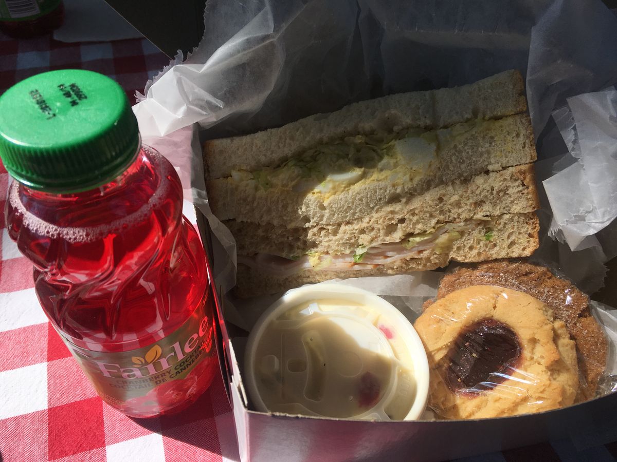 お昼は広場のテーブルで、用意頂いたサンドイッチをいただきました。ボリュームもあり、美味しかったです。