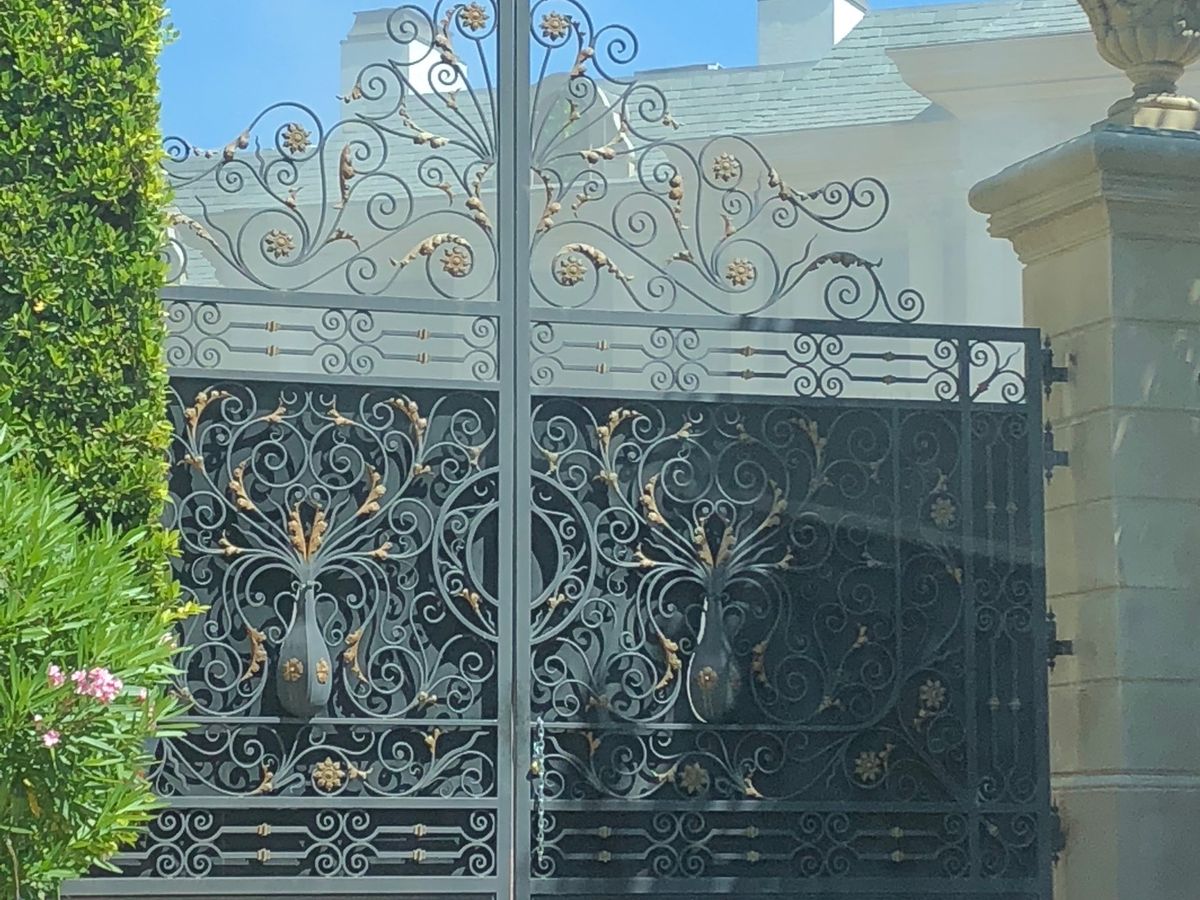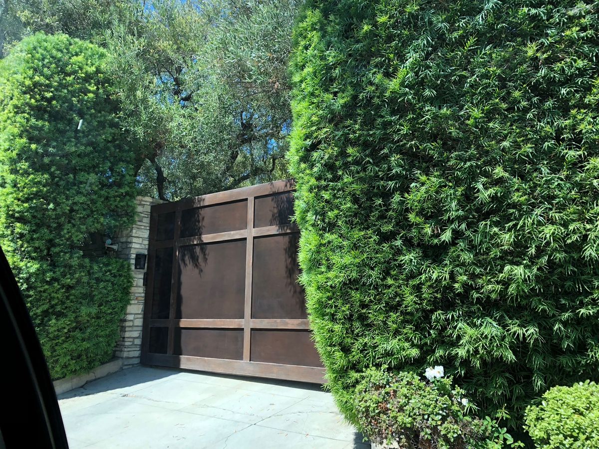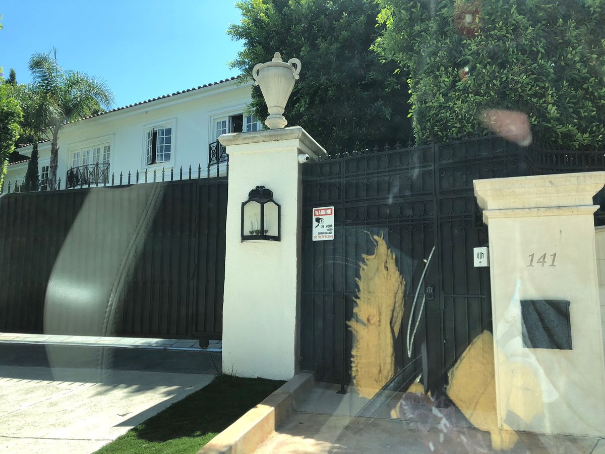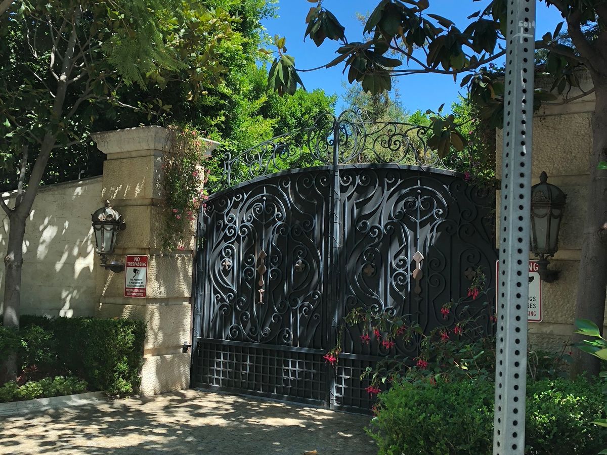 後ろに豪邸があるであろうと想像して、門を見るツアーですね。豪邸はもちろん見られません。たまたま門が開いたら別ですが…。表札があるわけでないので、案内された所が本当にスターの家かはわからないけれど、塀の高さとかセキュリティの強固さとかを見るには面白い。