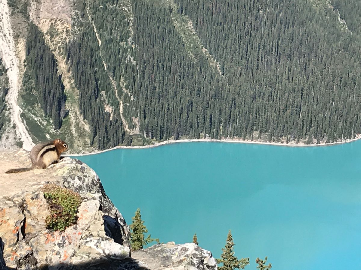 絵の具を混ぜたような色の湖と、かわいいリスと、美味しいおにぎりと。