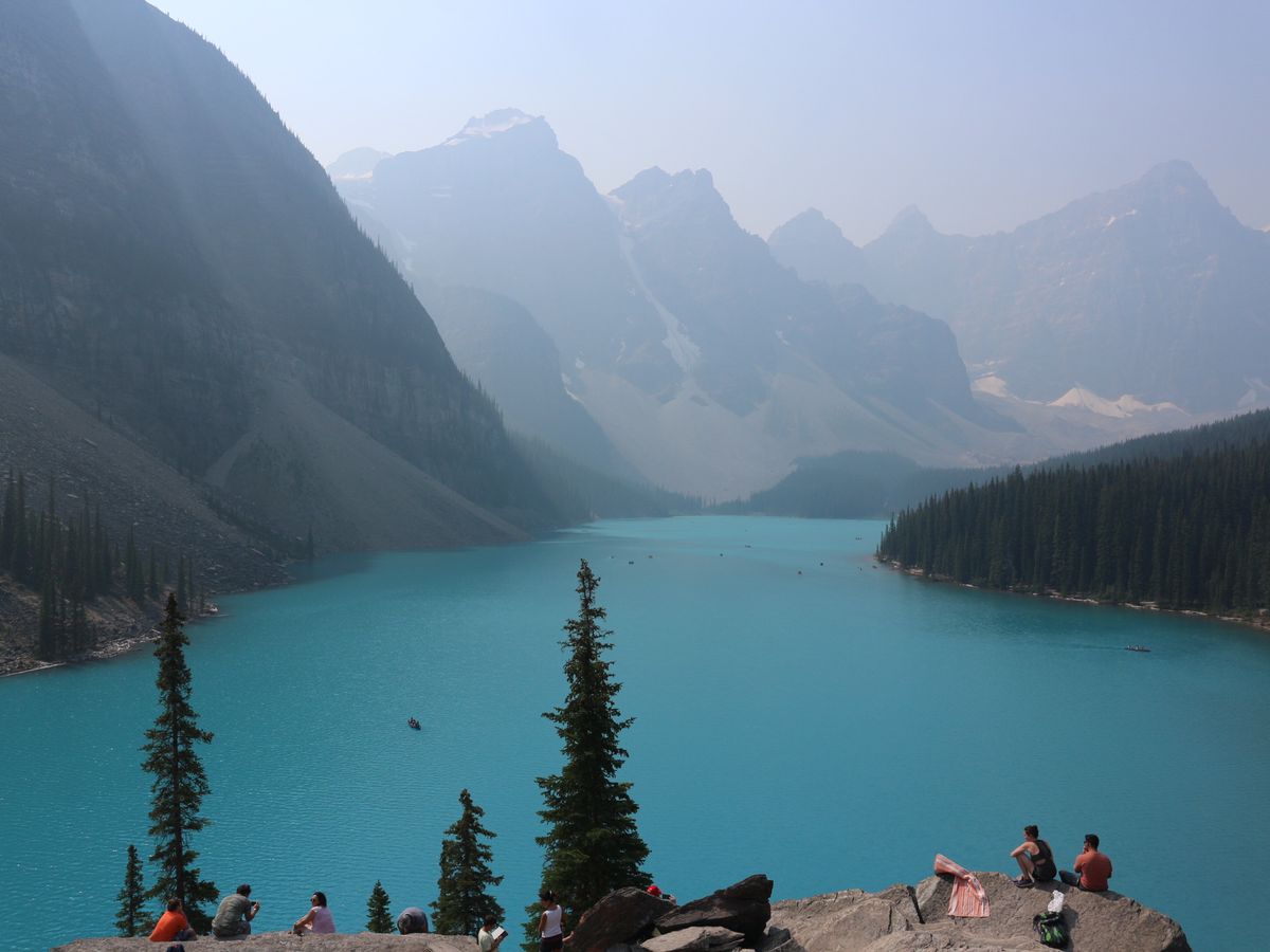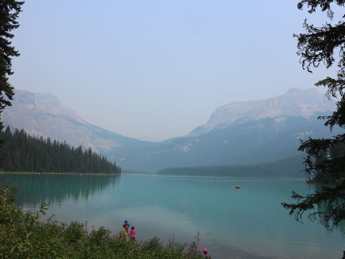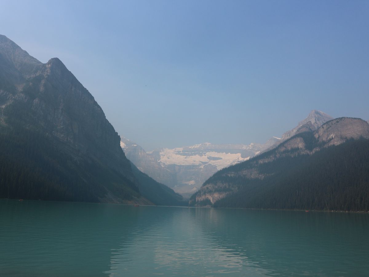 当日は、何とここ数日でおこっている山火事の影響で、バンフ一帯あいにくの霞空...