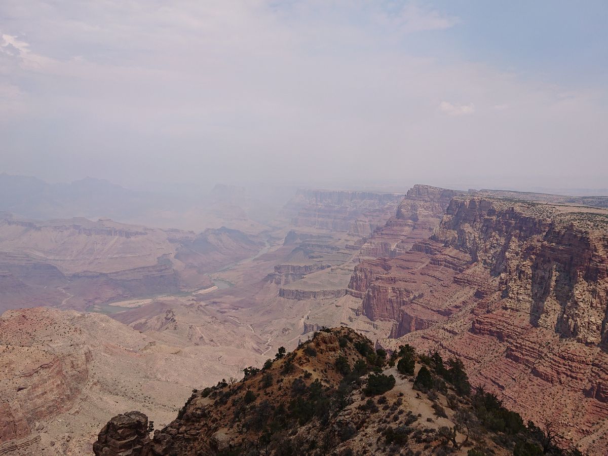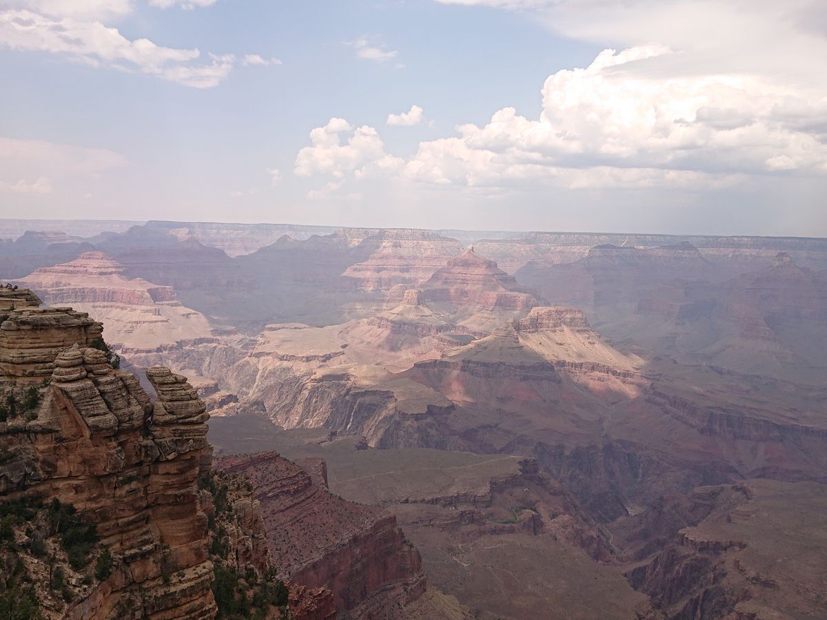 そしてグランドキャニオンはとにかく広い、地平線見える!!この日はスモークがかってて少し残念でした。野生のリスがあちこちにいて可愛かった!でもこのリスに噛まれる事件が多発してるらしく、絶対に触っちゃダメということ。また、エサをあげると罰金$100などと看板に書いてありました。