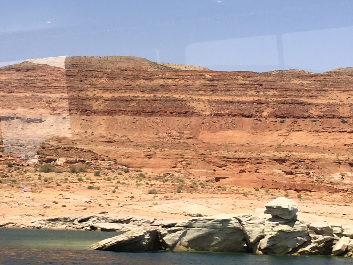 レイクパウエルはクルーザーやカヤックジェットスキーで休暇を楽しむ人の中で日本では見れない景色を味わえました。これ本当に湖?海なんじゃないの?と思う場面も!