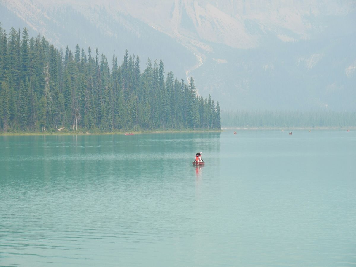 エメラルドレイクでのカヌーは70ドルしますが、同じようにひとり旅だった方と割り勘して乗りました(最大3人まで)。待ち時間もあったため20分ほどしか乗れませんでしたが、山と湖の色がより近く感じられ、いい思い出になりました。