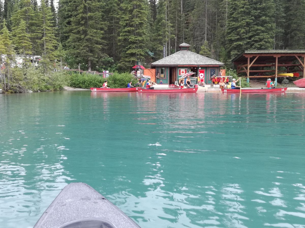 エメラルドレイクでは、カヌーを楽しみました。湖の真ん中からの景色を見ることができました。