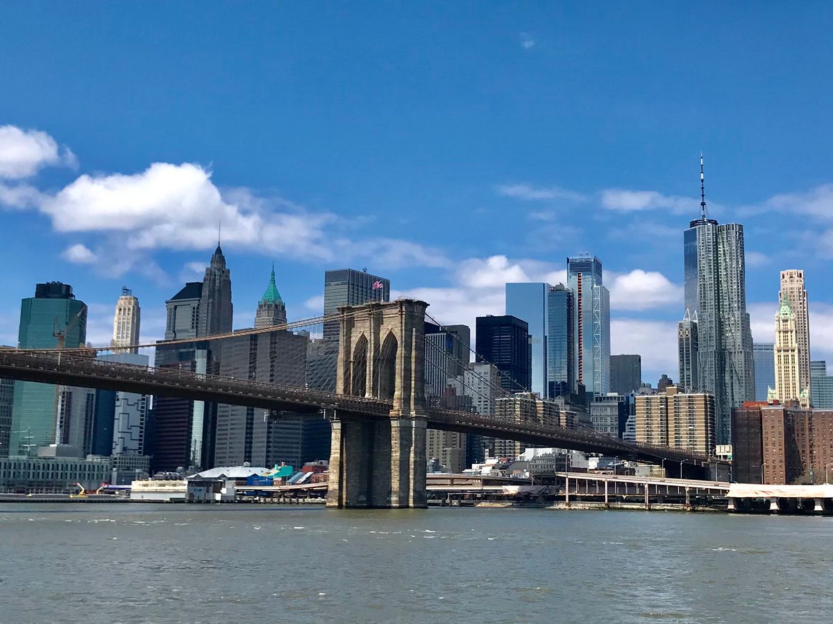当日、天気予報は曇りでリバティ島に行く船に乗船するときは結構な雨降りになってテンションだだ下がり。でもブルックリン橋を渡るときにはナント太陽が(^ ^)