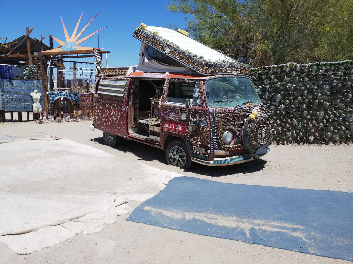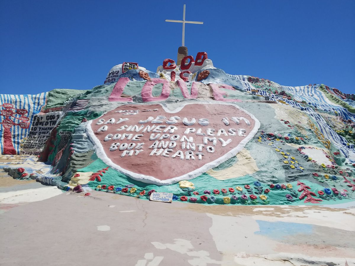 ホテルから車で数時間でサルベーションマウンテンまで着きました。