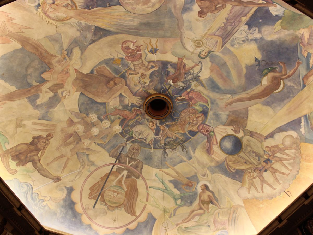 グリフィス天文台の館内の天井には、美しい絵が描かれています。