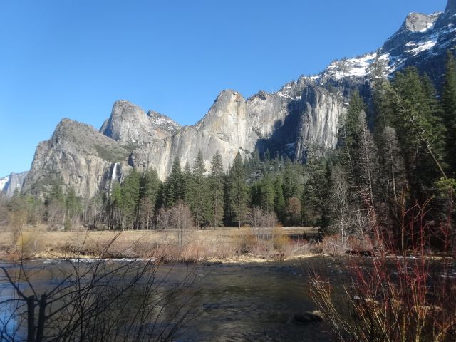 行きと帰りに寄っていただいたスーパーマーケットは、色々な軽食とお土産が購入でき、まずは、ジャイアント・セコイア・ハイキングで、なかなか経験できない雪道の脇での朝食で一休みしました。グレーシャーポイントからのエルキャピタン、ヨセミテ滝、ハーフドームやブライダルベールなどの絶景は、有名なグランドキャニオンとは違った高原、高山、川、森林という日本でいう上高地や尾瀬、北アルプス山脈をもっとスケールアップさせた、とても感動的な景色でした。帰りには、ヨセミテフォールやヨセミテビレッジの周りの散策、きれいなメルセドリバーの畔での休憩は心安らぐひとときとなり、朝の6時からのツアーでしたが、疲れを少しも感じさせない、妻も私も、とても満足な1日となりました。