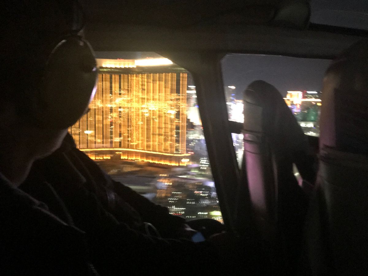ヘリコプターのマークのバン(バスくらい大きいです)で迎えが来て各ホテルを周ってベガスサイン横の空港へ