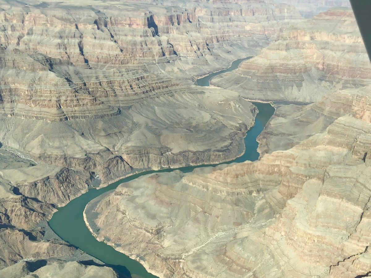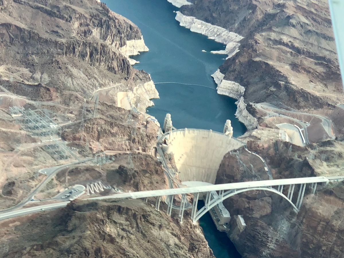 フーバーダム、ミード湖を経由してグランドキャニオン西空港上空近辺を遊覧、風も無く快適なフライトでした