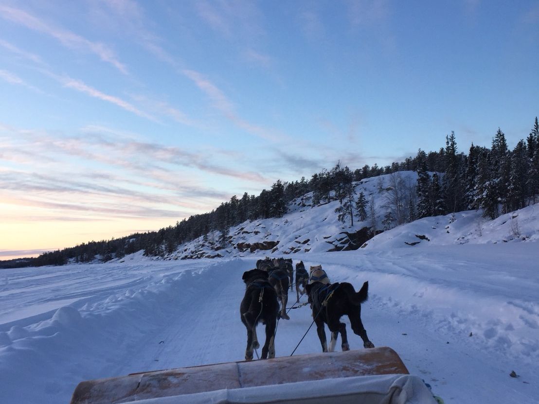 旅行でイエローナイフに来ました。時間が十分にあったので、犬ゾリ操縦体験を申し込みました。時期によっては日が落ちる時間が早いので要注意です。12月下旬で14:00に予約しましたが、終わる頃には日が落ちてました。