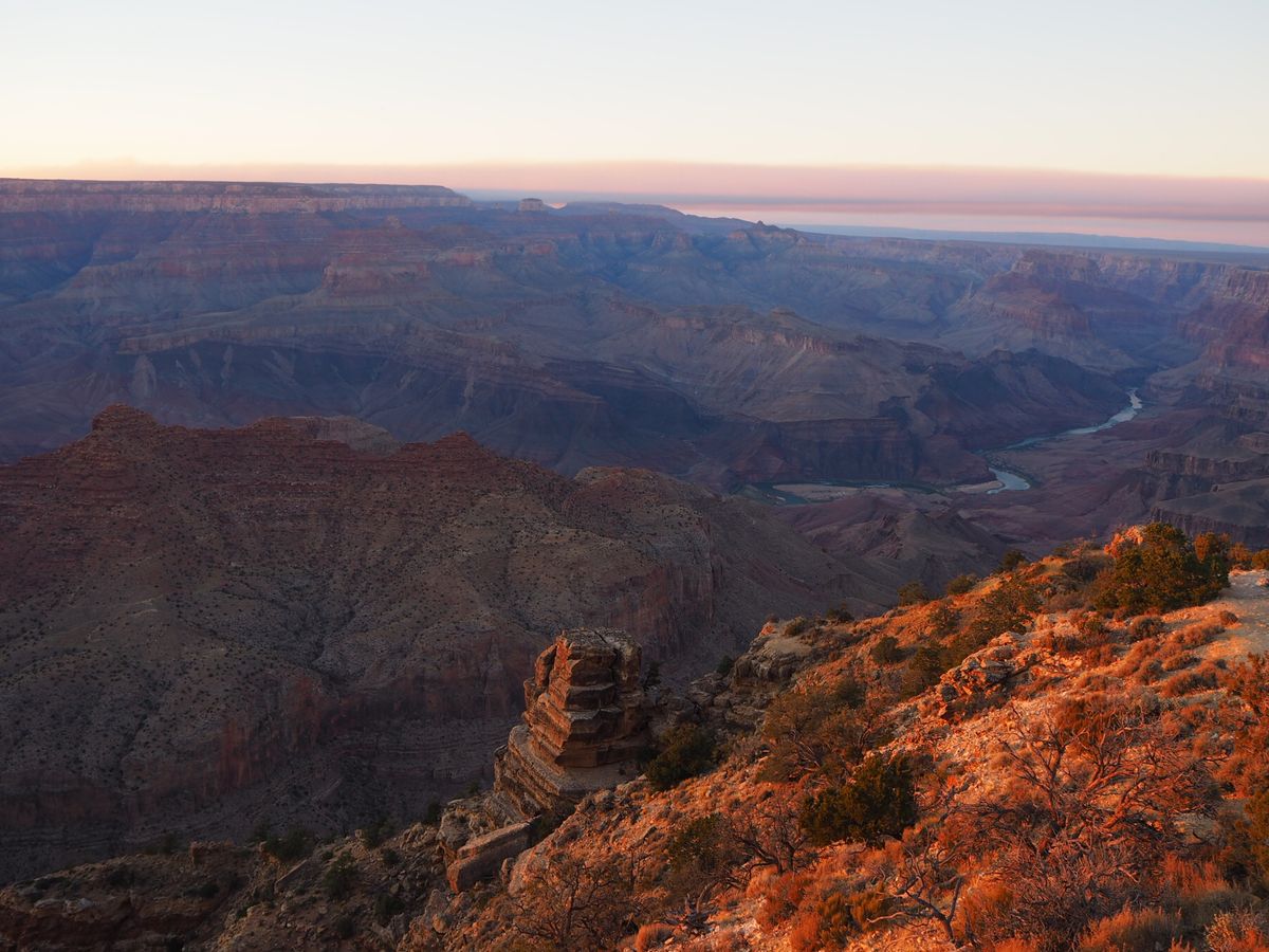 夕暮れどきに曇ってしまい、赤く輝くグランドキャニオンは見られませんでしたが、それでも十分、自然を堪能できるツアーでした。