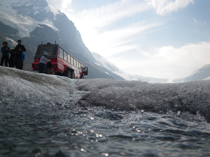 メインのコロンビア大氷原では、雪上車下車後15分間の見学。もう少し滞在したかったが、多くの観光客を相手にする事を考えれば仕方ない事なのかもしれません。