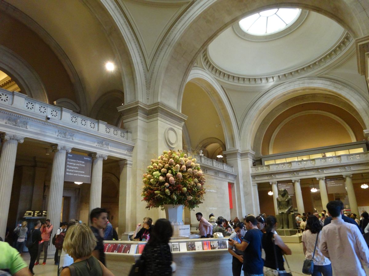 今回このメトロポリタン美術館を帰国日に当たる 最終日に入れたのが敗因でした。とても楽しみにしていたこのツアー、まずはバスか地下鉄を選べるところ 全員一致でバスとなり トランプタワー裏手から乗車、ガイド歴18年(アメリカ在住38年?)のガイドさんも驚くほど渋滞で普段は15分ほどの道のりに45分近くもかかってしまいました。有名な美術館入り口の前階段で一人ずつ記念撮影、トイレ休憩などをしていたらあっという間に11時 せっかく見たい絵画があったのに、そこへ至る前にタイムアップ 私一人帰る羽目になり 泣く泣く断念。(他の皆様はゆっくりご案内頂いていました。)でも是非、又このツアーに参加したいものです。