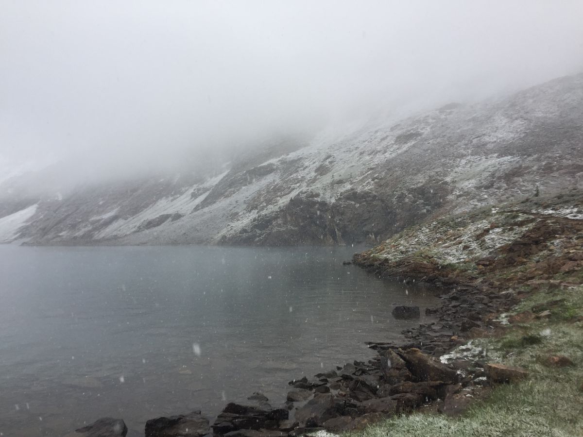 当日は8時半発のシャトルバスに乗り、レイクオハラへ。最初は曇り空ながらも美しい景色を楽しみゆっくりバイキングでしたが、レイクマッカーサーが近づくに連れ、雨は雪に変わり、積もりだしました。雷鳥親子も岩場で滑るような悪天候の中、私と友人、そしてご夫婦の、いかにも登山素人4人を率いて、若き平林ガイドは、正直、本当にお困りだったと思います。けれど冷静にルートを選び、早めに切り上げてしまうこともなく、我々の希望を受けて、夕方のシャトルバスの時間いっぱいまで、山を満喫させて下さいました。