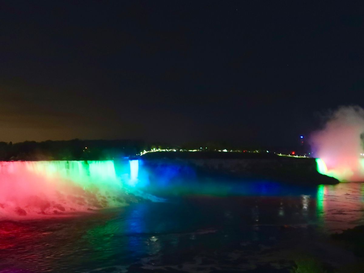 メインのナイアガラの滝鑑賞は、最初アメリカ側から見て、その後カナダへ入国し、カナダ側から。カナダ側のホテルにチェックインして、夕食含め自由行動。翌朝アメリカ側に戻り、今度は船で滝壺付近までクルージングして、滝を後にする、という流れでした。上から見た滝も、下から見上げる滝も、日本ではお目にかかれない圧巻のスケールでした。夜は滝がライトアップされて、かなり俗っぽい雰囲気でしたが、それも含めてカジノができたり、町中にアトラクションがあったり、町自体のお祭りムードが楽しかったです。