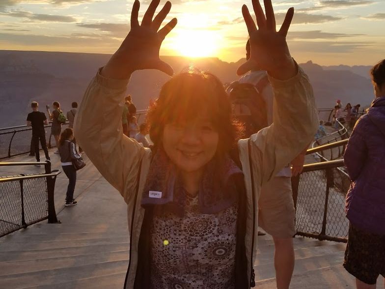 次の日は、夜明け前に起きて、ドライバーさんの誘導で、ベストアングルでスタンバイ。だんだんと朝焼けが始まり、やがて金色に輝く太陽が、まっすぐに、目の前の山々から上り始めたときの感動は最高潮!思わず手を合わせ、今、このグランドキャニオンにきて、ここにいることの感謝を心に刻みました。