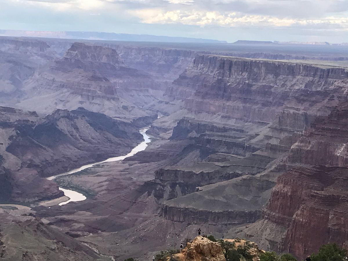 突然現れたグランドキャニオンの風景は、想像を超える壮大さ。大宇宙を作った創造主のスケールの大きさに感服しました。その渓谷の深さや陰影の素晴らしさは、太陽が沈み始めたときに、更にくっきりと刻まれ、その美しさと言ったらありませんでした。途中で小雨が降りだして、夕焼けが見れないかもと心配していましたが、直前の雲が薄くなってきて、ちゃんと夕焼けを見ることができたときの喜びと言ったらありませんでした。