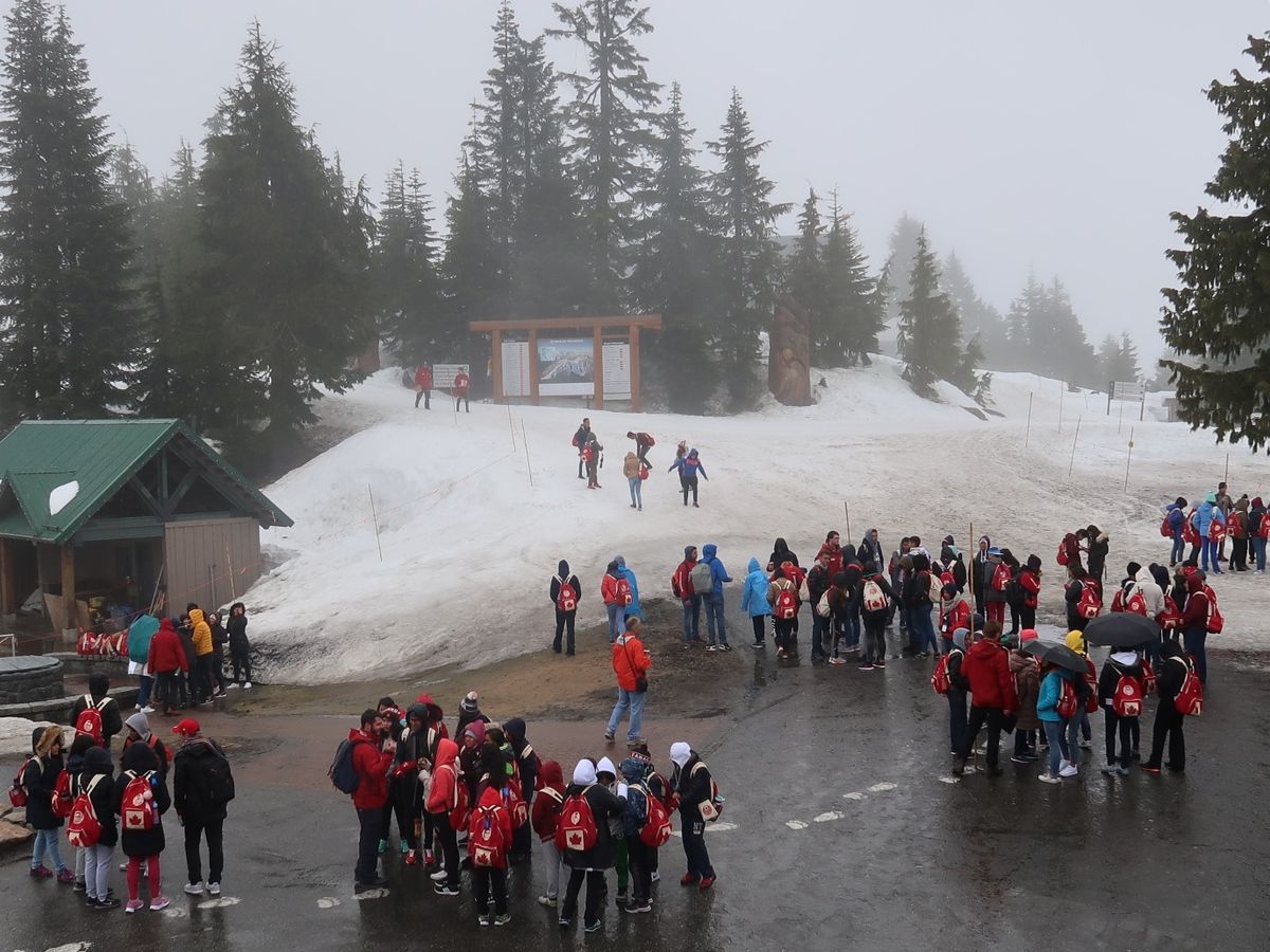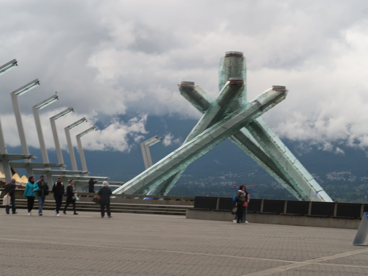 当日は雨模様でグラウスマウンテンの眺望は残念ながらダメでした。よかったのは、オリンピックの聖火のたいまつ展示と、雪の中の子供たちの元気そうな姿でした。