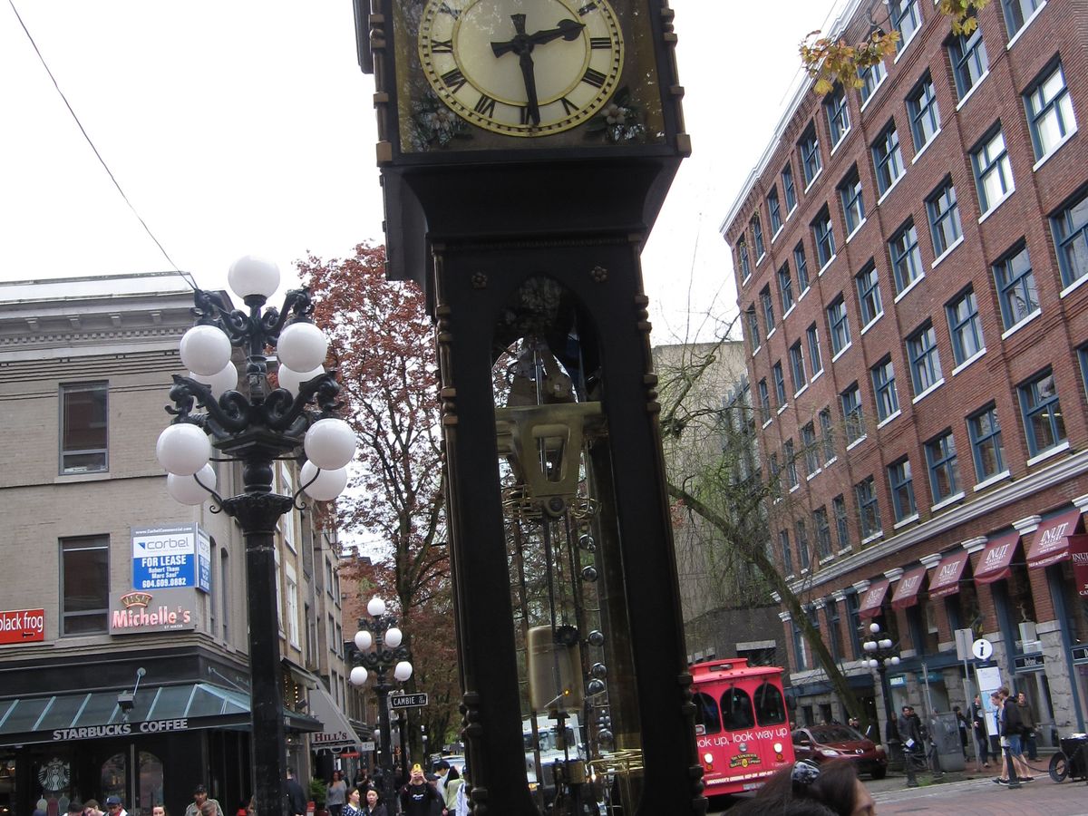 昼からは、ウオーターフロント駅で、バスと再会。ギャスタウン、チャイナタウンを車窓から見学することが出来ました。ガイドさんは、ドラーバーガイドということで、大変お忙しそうでしたが、蒸気時計の所では、蒸気による時報のタイミングに合わせて下車させてくれたりとか、とても親切でした。