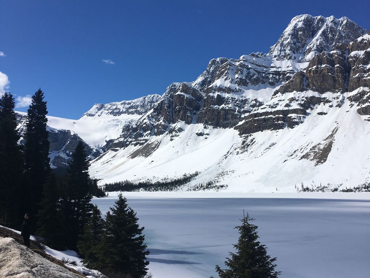 季節は5月下旬、快晴。今年は雪が消えるのが遅いようで湖によってはまだ凍っているところもありましたが、それはそれで美しく、雪が溶けて澄んだ湖面に移るロッキーの山々は絶景。帰りの高速道路沿いでは、フェンス越しに歩くグリズリーを見ることもできました。フェンスを越えたすぐそこに厳しくも美しい自然があることを実感できる、大満足のツアーでした。