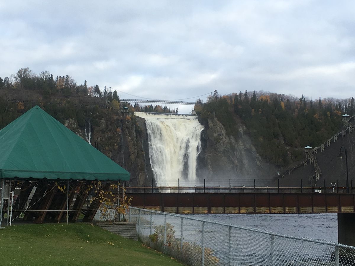 半日観光でしたが、ケベックシティ郊外の見どころを全てご案内していただいた様に思います。まずは、宿泊しているホテルへのタクシーでお迎えにきてもらいました。まず、向かったのはモンモランシーの滝 車中では、色々な説明を細かくしてもらい