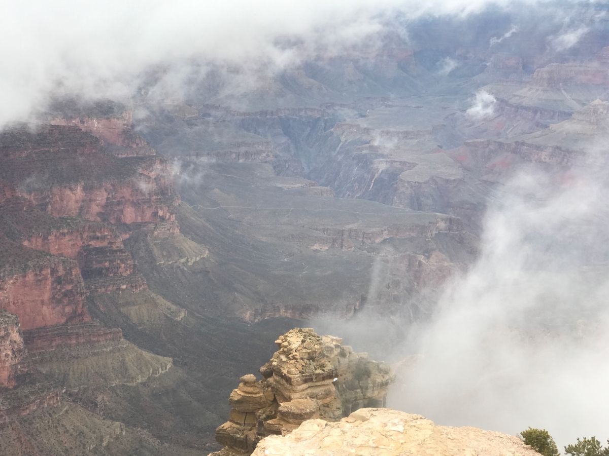 しかし…各ポイントとも、しばらくすると不思議なことに、吹雪は止み、霧もどんどん流されていき、雄大なグランドキャニオンを見ることができました。神ってます!!