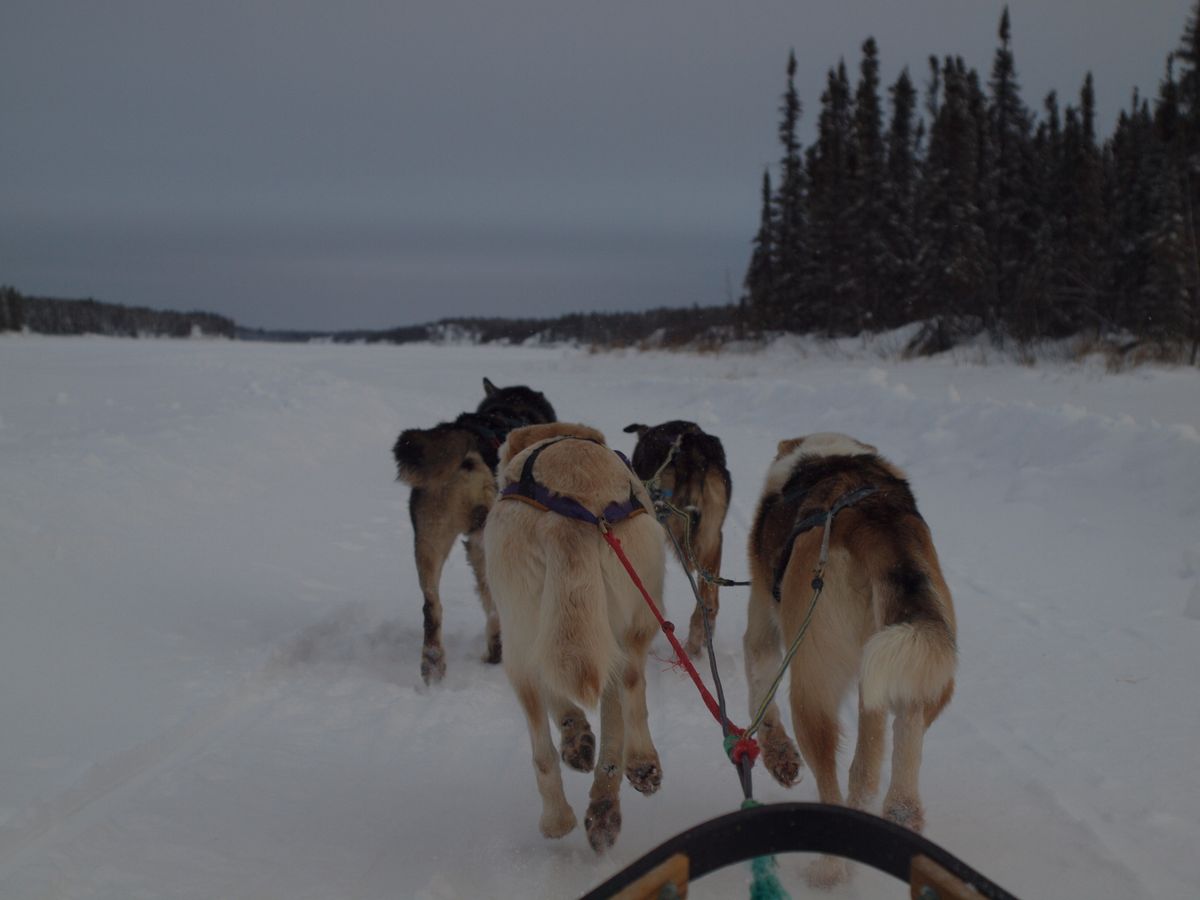 アラスカンハスキーの犬ぞりは思った以上にスピードが出るのでスリル満点。しかしさすがもともとレースに出ていた犬なだけあって走りは安定していました。