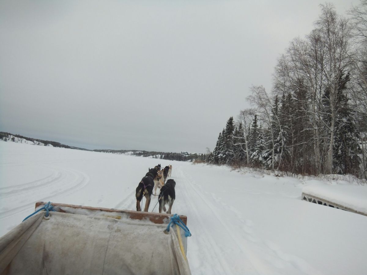 初めてイエローナイフを訪れ、イエローナイフといえばということで冬しか出来ないアクティビティ、犬ぞりに参加することにしました。当日はホテルの目の前まで送迎してもらい、いざ着くと何百頭もの元気な犬たちが迎えてくれました。犬ぞりをする前にスタッフの方から犬たちの説明があったり、写真もとっていただきました。犬ぞり師さんの掛け声でスタートし、10頭ほどの犬たちが頑張って引いてくれました。細い道を抜けるととても広い湖に出て、そこを30分ほど走りました。綺麗な景色とかわいい犬たちを見ているとあっという間に終わってしまいました。中々体験出来ない犬ぞりが出来てとてもいい経験になりました。ありがとうございました!