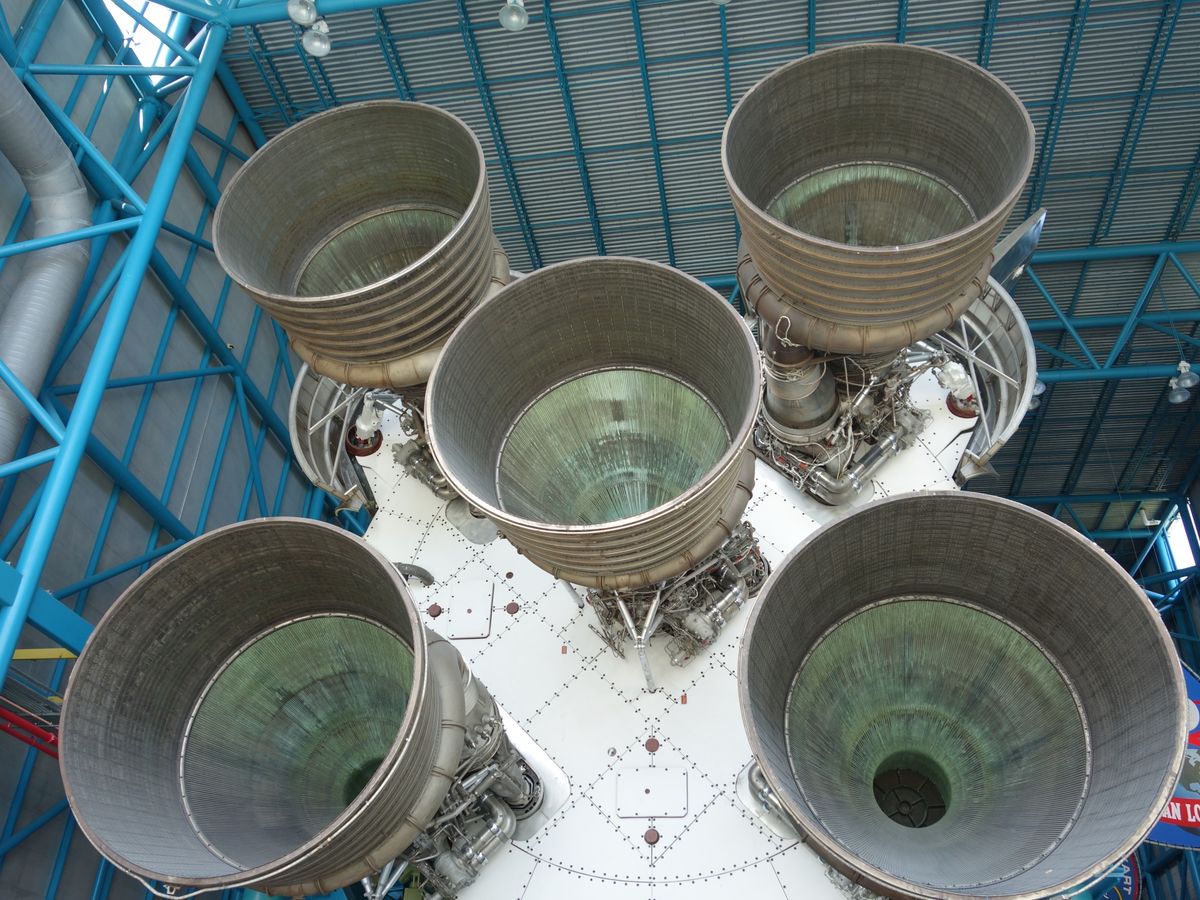 スペースシャトルの現物を目の当たりにすると鳥肌が立つような気分になりました。そのあとバスに乗ってロケットの発射台の方へ、途中サターン5号ロケットの実物や月の石なんかも手に触れることが出来ました。少し前に種子島の宇宙センターに訪れていましたが、規模の差は話になりません。スペースシャトルの組み立て工場の近くで記念撮影の後、元のビジターセンターに戻り、一時解散で昼食とお土産購入タイム。後で考えると食事やお土産を削ってでももう少し施設を見ておくんだったと少し後悔しています。本物と模型はその迫力が全く違います。