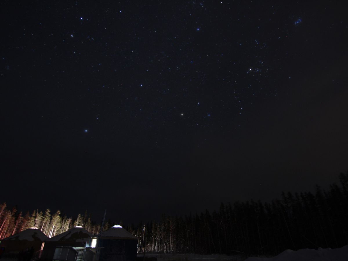 防寒具のレンタルをせずに参加しましたが、バンクーバーで前泊しており、ある程度の防寒準備をした上で飛行機に乗り、空港で追加に防寒具を身につけ、そのままオーロラセンターへ!なんと初日からオーロラを見ることができました。また、天気がとても良く、綺麗な星空に感動!星の多さや大きさ(近さ?)に驚き、星に手が届きそうな感じで、流れ星もたくさん見ることができました。