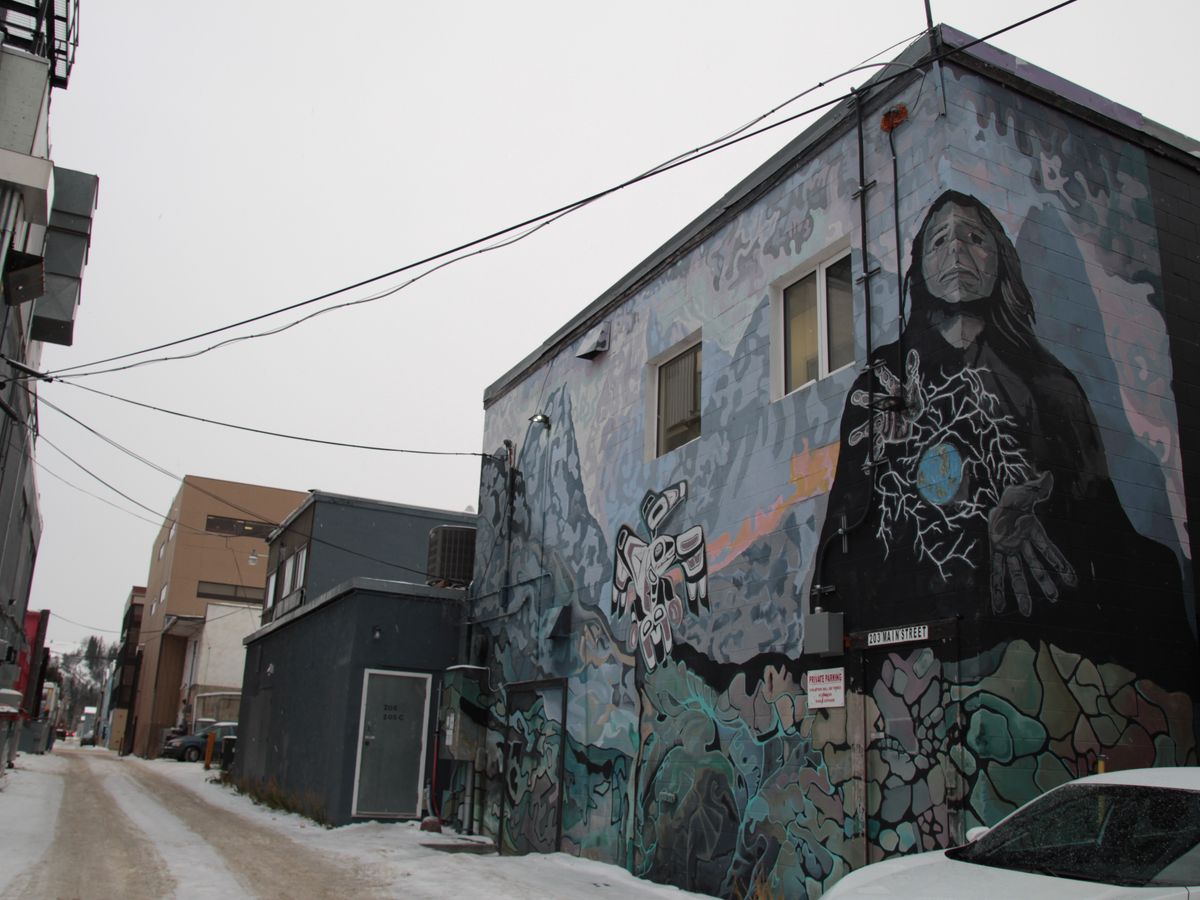 夜中2時までオーロラ鑑賞をし、ホテルに戻りチェックインしたのは夜中の3時頃のため、昼前までゆっくり部屋で休みました。日本人ガイドの方がホテルのチェックインについてもサポートしてくださるので、何の心配も要らず助かりました。朝&昼ご飯兼で近くのカフェで食事をした後、街散策へ。小さな街ですが、カフェやお土産物屋など様々なお店などがコンパクトに並んでいて、とても便利で快適な街でした。また、壁面アートがあちらこちらに点在しており、非常に見ごたえがあり、素敵な街の風景が楽しめました。
