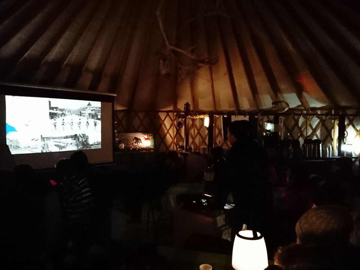 夕食を食べた後、10時半にホテルロビーに集合し、オーロラツアーに参加。2日目は、残念ながら雲が広がり、オーロラは見れず。ただし、ガイドの方々がオーロラについてのプレゼンや、ユーコンの街のプレゼンなどをして下さり、温かいドリンクと美味しいスナックを食べながら楽しくお話しを聞けてよかったです。オーロラセンターには、3棟のヤートとテントが2張あり、メキシコや中国、韓国、フィリピンなど世界各国から参加されている方々が一緒になるので、非常に貴重な時間を過ごすことができました。