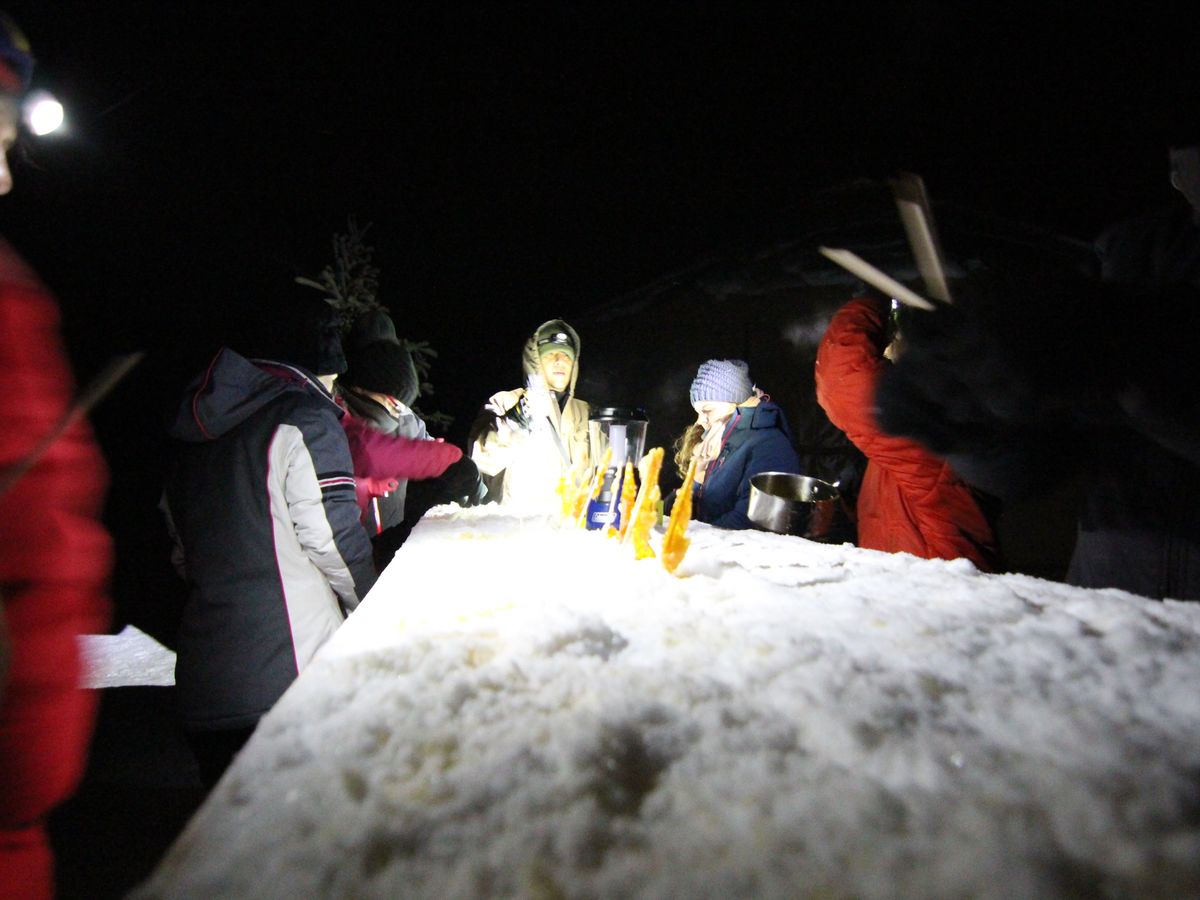 前日にガイドの方にユーコンの街のお勧めスポットを教えていただいたので、昼間は川沿いの散歩を中心に市内観光。この日のオーロラ鑑賞は、3日間で一番良く見え、何度も夜空に広がるオーロラを楽しめ、あっという間に時間が過ぎました。子供たちは、テントの中でマシュマロを焼いたり、溶かしたメープルシロップでキャンディーを自分で作ったりするのもとても楽しかったようです。